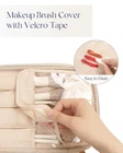 【SEPARATE BRUSHES COMPARTMENT】Featuring 4 slots with a transparent makeup brush cover equipped with Velcro tape, the top flap accommodates over ten brushes of varying sizes, while the transparent PVC cover ensures effortless cleaning and dust resistance 【VEGAN LEATHER】The makeup bag is made of high-quality vegan leather, which is 100% waterproof, comfortable, soft, and environmentally friendly. The well-padded design inside the makeup bag also provides good protection and extends the overall service life of the bag 【EASY ACCESS DESIGN】Equipped with a removable Velcro divider, the bag boasts 6 lipstick slots and 2 mesh pockets, along with 1 elastic pocket inside, all of which facilitate organized storage of your cosmetics. Meanwhile, it helps you easily access your beauty products 【ROOMY CAPACITY】Size: 9.4 x 6.4 x 4.7 inches. The makeup bag can easily accommodate both travel-sized toiletries and full-sized skincare products. With its vegan leather handle and excellent portability, it makes an ideal choice for both weekend trips and daily use 【EXQUISITE GIFT BOX】Every cosmetic bag is packed in an exquisite gift box. Whether it's Valentine's Day, Christmas, Mother's Day, Women's Day, a birthday, or an anniversary, this stylish and practical makeup bag is the perfect choice to express your appreciation