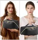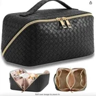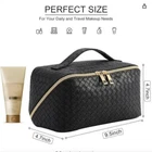 Makeup Bag Large Capacity Travel Cosmetic Bag Portable Leather Waterproof Women Travel Makeup Bag With Handle And Divider Flat Lay Checkered Cosmetic Bags (BLACK) PLEASE NOTE THE ZIPPER ON THE ACTUAL BAG IS BLACK. THE SINGLE PULL TAB IS GOLD. THESE PHOTOS ARE STOCK PHOTOS USED TO ILLUSTRATE THE INSIDE AND DIMENSIONS THIS BAG HAS ONE PULL TAB ON IT THIS IS NEW IN PACKAGE
