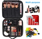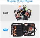 Makeup Bag Organizer, Travel Makeup Bag with Extra 3 Brushes, Adjustable Divider 【Premium Quality】Travel makeup bag is made of high quality oxford fabric and soft padding for shockproof which is durabl, waterproof and easy to clean. Good metal zippers can be used repeatedly and are not easily damaged. 【Extra Brushes】You will get 3Pcs good quality professional makeup brushes of different sizes. You don't need to spend extra for brushes which saves you money. 【Ample Storage】Make up bag has enough space to store your makeup and cosmetic accessories such as lipstick, eye shadow, nail polish, makeup brushes, and even bath supplies for travel. 【Compartment Design】Portable cosmetic bag has 6 built-in removable dividers, you can keep all your essentials organized by adjusting the dividers to fit your makeup and keep them perfectly separated. 【Travel Companion】The size of this travel makeup bag is 10*3.7*8.8 inches (25.4*9.4*22.4 cm). Also comes with a hand strap, making travel makeup bag easy to store in a suitcase or on a desk. Portable and lightweight design allows you to take your makeup bag anywhere.
