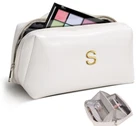 Personalized Elegance: Our chic makeup bag features a glossy initial, ideal for organizing cosmetics or gifting to sisters, friends, bridesmaids, and more. Spacious Design: Discover your travel essentials with our roomy toiletry pouch, complete with multiple compartments for makeup and toiletries. Easy Access: Effortlessly locate your makeup with the open-flat design of this pouch, enhancing your beauty routine. Durable Construction: Meticulously crafted with waterproof PU leather and a thick textile fabric interior, ensuring long-lasting durability. Portable Convenience: Lightweight and designed with a handle for easy portability, this makeup organizer is perfect for on-the-go use during yoga, at the gym, or while traveling.