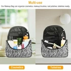 Makeup Travel Cosmetic Bag Case Multifunction Pouch Toiletry Zip Pouch Organizer Featured Item Product Detail Image Gallery Product Description Overview: Store your travel necessities like cosmetics, makeup brushes, nail polishes, toiletries, or any other accessories in one portable lightweight bag, which can be carried on hand, tossed in travel bag/suitcase or slipped in your overhead storage compartment on bus or plane. Durable water-resistant fabric provides good protection for items inside even when the bag is accidentally spilled or scratched. Features: Multi-use: Our Travel Makeup Bag can organize cosmetic,makeup brushes,nail polishes toiletries,and any other small items neatly. Because of its small size and light weight,you can tossed it in your travel bag/suitcase or slipped it in your overhead storage compartment on bus or plane. Water-resistant Material: Our Travel Makeup Bag is made of honeycomb waterproof nylon fabric,it will protect your personal items from the penetration of moisture,bring you a clean and comfortable trip. User-friendly: Our Travel Makeup Bag has 5 separate elastic loops and 7 slots for toothbrush or makeup brushes. So,it keeps all kinds of your brushes handy and secured. Additionally,with a removable mirror in the top of our Travel Makeup Bag,letting you can have a makeup at any time or any place use. Portable & Durable: The durable carrying handle can be carried by hand easily,hung up on bedroom or bathroom door handles. It is ideal for bathroom organization,travel,camping and trips. And with its dual smooth and durable zippers let you can fully open or just open any segment of the compartment for easy access. Variety of Styles For You: Our Travel Makeup Bag has 6 colors in different patterns,including zebra,rose,brown spot,white spot and pink spot. Specifications: Material: satin fabric ( polyester) Size(unfolded): 7.87” x 3.94” x 4.72”/20 x 10 x 12cm (L x W x H) Weight: 92g/3.3oz Package size: 8.66” x 5.51” x 1.34”/22 x 14 x 3.4cm (L x W x H) Package weight: 94g/0.21lbs Available colors: pink, white, zebra, brown, rose, color Package Contents: 1 x Travel Cosmetic Makeup Organizer Bag with Mirror 1 x User Manual Terms & Conditions Thank you for your business !