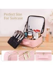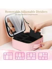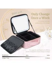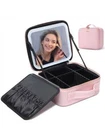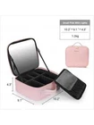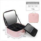 PORTABLE DRESSER: Large capacity cosmetic storage compartment, large makeup brush storage board, perfect lighting guarantee- thanks to an advanced luminous system which designed with3 lighting environments, giving you the freedom to do your make-up comfortably anywhere. The innovation of this cosmetic case doesn't stop there: a single charge will last around one week. THREE WAYS TO FIND YOUR LIGHT: The full-screen light mirror of can switch from warm white, neutral white, or natural daylight with a simple tap and the light brightness is adjustable with long press. You can feel confident your makeup is absolutely color-correct with lighted makeup case. And the mirror is designed with a adjustable strap that allows multiple angle for easy makeup application. 2-LAYERS LARGE CAPACITY: This large capacity LED light makeup storage box (size 26cmx23cmx11cm) design-large cosmetic case and large brush board, It is enough to storage your cosmetics and makeup accessories like lipstick, makeup brushes, eye shadow, nail art tools, skin care products and so on. ADJUSTABLE COMPARTMENTS: Our makeup train case comes with 6 removable EVA dividers, 10 makeup brushes slots, you can DIY the internal compartments as needed to fit different cosmetics and keep them perfectly separated and organized. PREMIUM LEATHER MATERIAL: travel makeup case with mirror is delicate synthetic leather, can be waterproof, shockproof, dustproof and easy to wipe clean, different from other cosmetic bags made of oxford cloth. It is also smell-free. Specifications Material: PU Product Size: 26cmx23cmx11cm Net Weight: 1.5kg Color: Pink Mirror Battery Capacity: 2000mAh 3 Level Led Light: Warm Yellow Light 3200k, Natural Light 4800k, Cool White Light 7300k Power Supply: Power Cord, Mobile Power Package Included 1*Makeup bag 1*Instruction On Oct 11, 2024 at 21:58:02 PDT, seller added the following information: