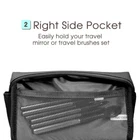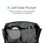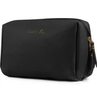 Compact but smartly designed. It has good dividers inside to organize the makeup and since it's straight on top not rounded, you don't lose space for brushes etc. Great holiday or birthday gift for women and girls. LARGE VERSION Size 8.3"x5.5"x3.8"/ 21x14x9.5 cm, weigh only 4.3 ounce, decent size without any bulkiness. Roomy enough to store travel-size toiletries, brushes and common-size cosmetics. Great for traveling or just storing makeup/toiletries ROOMY MAIN COMPARTMENT Provides different compartments to fit various items, they flair out a bit to see all the way in. One main compartment with 3 small pockets neatly organizes your makeup. One large compartment easily holds travel-size toiletries or large skin-care products. Side pockets holds your concealer, lipsticks or other small items. WATER-RESISTENT Water-resistent and durable fabric protects your gear from spills, easy to wipe down. HIGH QUALITY Soft PU leather, nice lining, reliable double zippers, zip-top closure.