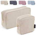 You will get 2 pack makeup bag in total. The large makeup bag approx. 9.4" x 5.1" x 2.4" , The cubes makeup bag is approx. 4.7" x 5.1" x 1.97". Perfect for organizing your backpack or purses. Interior Pockets on Both Sides: The interior of the makeup bag features pockets on both sides, providing convenient storage options for organizing your cosmetics. These pockets allow you to keep your brushes, lipsticks, and other small items separated, minimizing the risk of them getting tangled or damaged during transportation. Portable Makeup Bag: Small and lightweight (0.26 lbs.) These makeup bag fits in most handbags and is easy to carry wherever you go. It is perfect for travel, vacations, dates, parties, business trips, amusement park, hiking, and other occasions. Perfect Gift: Made of soft corduroy with supple touch. The stitching and zipper are great quality and well made. makeup bag is the perfect gift of your choice for birthdays, Christmas, Halloween, Mother's Day, Valentine's Day and preppy style gift for women and girls. Multiple Color Options for Daily and Travel Use: To cater to individual preferences and style, the makeup bag is available in a variety of colors. With its studry construction and efficient organization features, it ensures that you can easily access and protect your cosmetics for both your daily beauty routine and travel adventures.
