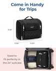 Return Policy Fast Delivery Trusted seller Makeup Bag for Women with Hanging Hook - Portable Cosmetic Case, Large Capacity Door Room Essentials Travel Organizer for Full Sized Cosmetics and Toiletries, Black Product Description 【Large Capacity】: This makeup organizer measuring 11 x 5.9 x 8.46 inches (open) and 11 x 5.9 x 2.8 inches (rolled). The spacious main compartment accommodates a wide range of cosmetics, travel-sized toiletries, and travel accessories, while two zippered side pockets offer additional storage options. The left side pocket is lined with stain-resistant fabric, perfect for storing makeup brushes, while the right side pocket is ideal for keeping curling irons, combs, and more. 【Convenient Design】: The inner pockets are equipped with elastic straps to securely hold bottles upright, and the transparent zipper pockets allow for easy visibility and access to items without the need to open them. The customized metal zipper closure ensures a smooth and effortless pull, while the 360-degree rotatable and foldable anti-slip metal hook offers versatile hanging options. Additionally, the top handle allows for convenient carrying. 【Easy to Use】: With 3 transparent pockets, this hanging makeup bag organizer makes it effortless to keep your essentials organized. The left side pocket features a stain-resistant PVC lining, which is tailored to store makeup brushes, powder puffs, sponges, and other items that require special consideration. The top and bottom transparent pockets provide additional storage space while ensuring easy accessibility to small items. 【High Quality】: Crafted from premium water-resistant polyester material, our makeup case boasts a soft and luxurious feel. The padded design not only preserves the bag's shape but also offers exceptional protection for your belongings. With reinforced stitching and heavy-duty materials, this organizer can easily withstand the weight of numerous items while remaining lightweight and incredibly durable. 【Multi-functional Makeup】: This portable hanging makeup bag is a multifunctional organizer bag that combines the functionality of a makeup bag and a travel toiletry bag. It is an excellent choice for a wide range of activities, from travel, business trips, fitness routines, and beach outings to picnics and home storage. It also makes for a perfect gift for ladies, friends, and family on special occasions such as birthdays, Christmas, and Valentine's Day. Shipping Returns Payment Shipping Shipping is FREE to all addresses other than APO/PO boxes in the lower 48 states. All our stock ships from US-based warehouses. Shipped via USPS or UPS (depending on location and package weight) Unless stated otherwise, all orders will ship within 24-72 hours of your payment being processed. Check our feedback to see the great reviews of FAST shipping we offer. Returns Seller does not accept returns Payment We currently accept payment via eBay managed payments only. Once payment is cleared, we will dispatch your shipment within 1-3 business days. Please refer to the "Shipping" tab for more information regarding shipping speed to your destination.