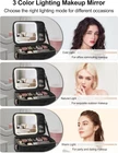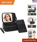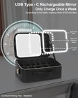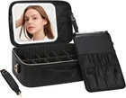 Makeup Bag with LED Mirror, Travel Cosmetic Train Case for Women, Makeup Artists Large Organizer Box with Vanity Light Up Mirror, 3 Color Lights, Adjustable Dividers & Shoulder Strap Black Large Capacity: Size inch x 9 inch x inch. It has enough space to store all your cosmetics and accessories. The makeup bag with led mirror is great for dark backstage areas or for the events where you don't have great lighting in your dressing room, convenient to apply makeup anytime, anywhere. Rechargeable Makeup Mirror: New generation makeup case design with LED makeup mirror, with cold white / natural / warm three-tone settings, and the brightness can be adjusted 0%-100%, which can perfectly meet your different makeup needs and make your makeup more delicate. Multi-Compartments: The makeup bag with 10 pcs adjustable dividers, allow you to DIY the size of the compartment to fit your cosmetics. 15 makeup brush slots keep your brushes neat and tidy, with dustproof clear cover. Travel Portable: The makeup case comes with a shoulder strap, and luggage strap, offer an easier way to carry, and make up well when you on the outside or traveling somewhere. The back of the makeup brush compartment has a thick sponge to protect the mirror when closed, not easy to break when traveling. High Quality Material: The makeup bag is made of high quality PU leather, durable and waterproof, with dual way smooth zipper and easy to clean lining. It is a great gift idea to your wife, girlfriend, mom, daughter and female friends.