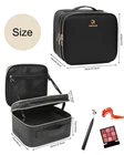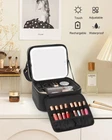 PROFESSIONAL MAKEUP BAG WITH LED MIRROR: Travel makeup bag with a rechargeable lighted makeup mirror, it has 3 Color Lighting Modes (Cold Light, Natural Light, and Warm Light) & Brightness Adjustment, adaptable to different environments and make-up needs. Gentle press the sensor switch to change the color of the light, and long press to adjust the brightness of the light. LARGE CAPACITY & MULTI-COMPARTMENTS: Size: 10.3 x 9 x 6.3 (inch). This makeup with a led mirror is the perfect size to carry all your makeup cosmetics accessories. Must have for professional makeup artist or makeup amateur. A LED mirror allows you to make up easier, creating a suitable makeup environment for you. DIY YOUR OWN PLACE: The makeup organizer bag with adjustable dividers, you can move the partitions as needed, and adjust the size of the compartment freely. A professional makeup brush section with clear cover, keep your brushes and cosmetics neat and tidy. A lipstick/lip gloss compartments. HIGH QUALITY MATERIAL: This makeup bag surface material is made of high-quality PU leather, which is durable, water-resistant, and easy to clean. Built-in waterproof lining, easy to clean when has a stain on it. Dual-way smooth zipper, easy to access. Durable handle easy to carry. IDEAL GIFT CHOICE: It is a wonderful Valentine's/Christmas/Birthday/Anniversary/Mother's day gift idea for your mom, wife, best friend, or female friend. It not only stores your cosmetics but also jewelry, electronic accessories, cameras, essential oils, toiletries, shaving kits,s and so on. (Note: Cosmetic Accessories Not included).