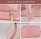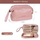 Makeup Bag,Double Layer Cosmetic Bag,Travel Essentials Makeup Bag,Leather Pink.