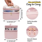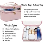Durable Makeup Bag Travel Accessories for Women, Valentines Day Gifts for Her Wife- This makeup brush organizer bag is made of high-quality PU leather material and nylon lining. It is durable, waterproof, scratch-resistant, anti-collision, easy to fast dry, which can effectively protect all your precious cosmetics. Also, the waterproof fabric is easy to clean, no need to worry about the color transfer of makeup residual stains. (Please note, beauty products are not included.), mothers day gifts Clear Makeup Organizer Bag - Different from traditional makeup bags, this upgraded make up bag has a double layer design, very easy to sort and store, the upper layer is made of transparent material, you can clearly see what is stored inside. Great for storing your lipstick, lip gloss, makeup palettes, hair brushes, skin care products, nail polish, and so on, without worrying that you can't find them, , great mothers day gifts or graduation gifts Large Capacity Makeup Bag - The second layer of this makeup bag is large enough to store all your makeup and cosmetic accessories, there are 5 elastic pockets on the top compartment to accommodate different size makeup brushes and keep them in place, and 1 elastic band for holding beauty tools. The main compartment is equipped with 1 detachable dividers, make it easy to keep your products organized and easy to find, also you can remove it for laying big items like travel hair dryer, shampoo, etc Portable Makeup Travel Bag: 9.37"L x 6.85"W x 6.38"H, this elegant pink makeup bag is an ideal size for your daily needs on the go, it can not only be used as a makeup pouch, but also can be used as women's makeup and travel bag, bathroom bag, cosmetic pouch, hygiene kit, etc. This portable cosmetic travel bag is the best choice and ideal companion for any traveler, it can be put in any kinds of suitcase, ideal for business trip, vacation, outdoors activities, picnic, and more Cosmetic Bag with Convenient Design - The makeup brush organizer feature a zipper opening and closing, double zipper allows easy access to your things from either side. It has a flat bottom which enables it to easily sit on a counter or dresser. This makeup case will help create some semblance of organization in your life, whether you’re at home or on the go. Please don't hesitate to contact us if you have any questions, we are very happy to provide you with satisfactory after-sales service