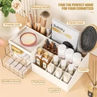【Versatile Use:】A vanity organizer with drawers that never goes out of style, it's perfect for any dresser organizer countertop or to organize perfume and lotion organizer needs, suitable as both a bathroom makeup organizer and a desktop makeup organizer. 【Durable Materials】Elevate your space with our sleek makeup organizer, crafted from high-quality ABS plastic for a sophisticated look. Its smooth surface and minimalist white design make it a perfect makeup and skincare organizer for any makeup organizers and storage needs. 【Perfect Size】 Measuring 9.65''L x 4.8"W x 3.67"H, this cosmetic organizer features 10 versatile compartments and two drawers, making it an ideal make up organizer for counter and cosmetic storage organizer. 【Ample Storage】 Designed as a cosmetic organizer countertop, it efficiently stores a variety of makeup essentials. Perfect for makeup palettes, eyeshadows, concealers, powders, nail polish, lotions, perfumes, and makeup brushes, this organizer provides a practical storage solution for your beauty needs. 【Gift-Ready Delight】This makeup and perfume organizer is the perfect gift for any occasion. Its elegant design and practical functionality make it a must-have for beauty enthusiasts. Surprise your loved ones with a stylish and efficient beauty storage solution! Product Description Multifunction Storage Solution Makeup Organizer – Streamline Your Vanity Easily hold all your makeup essentials, offering clutter-free access to streamline your beauty routine. The video showcases the product in use. The video guides you through product setup. The video compares multiple products. The video shows the product being unpacked. Real Customer Feedback 100% LOVE ! 1 GRID LAYERED DESIGN 2 TRANSPARENT DRAWER DESIGN 3 MADE OF ABS MATERIAL Can it hold cosmetics? What should I do if the product is received damaged? Yes, this storage box is very suitable for cosmetics and for organizing your jewelry. If you have any problem, we will solve it within 12 hours. How durable is this makeup organizer? This makeup organizer is made from ABS material, ensuring quality and extending its lifespan. Can I place it in the bathroom? Yes, this versatile organizer can be used in the bathroom to organize a variety of small and lightweight items.
