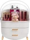 SLAY YOUR STORAGE: Gorgeous large capacity cosmetics organizer perfect for skincare, makeup, perfume, jewelry, toiletries and more. Create organization and accessibility for your go-to beauty items. A TOUCH OF SPARKLE: Add a touch of Paris glam to your vanity with the beautiful fluted design and gold detailing. EPIC DRAWER STORAGE: Great for smaller items, the 2 drawers can fit entire palettes of eyeshadow, lip gloss, earrings, hair accessories and more. That's Hot. SLIVING SEE-THROUGH LID: Easily see all of your organized items through the crystal clear folding lid. The lid stays open when lifted, so you can get access to your fave skincare or makeup products with ease. COMPACT AND PORTABLE: The built-in carry handle makes this organizer easy to transport around, while the compact size is great for fitting easily on a bathroom vanity or on a nightstand. Get ready to slay your storage with this gorgeous large-capacity cosmetics organizer! It’s the perfect home for all your beauty essentials—think skincare, makeup, perfume, jewelry, and even those must-have toiletries. You’ll create a beautifully organized space where everything is easily accessible and easy to find! This storage solution adds glamour and function to your vanity with its stunning fluted design and chic gold detailing. And don’t worry about fitting all your favorites in; the epic drawer storage has you covered! Those two adorable drawers can hold everything from entire eyeshadow palettes to lip glosses and even your favorite earrings and hair accessories. And let’s not forget the sliving see-through lid! With its crystal-clear folding design, you can easily find your go-to cosmetics. The lid stays open when lifted—perfect for quick access to your fave skincare and makeup products! Plus, this beauty is compact and portable, featuring a built-in carry handle for easy transport. It fits snugly on your bathroom vanity or nightstand, making it a must-have for any beauty lover!