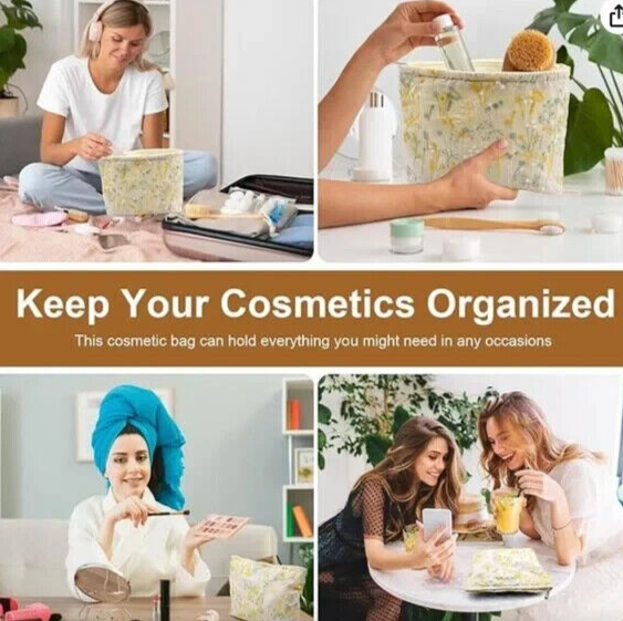 Makeup bag, Flower Cosmetic Bags for Women Girls, Large Capacity Corduroy Makeup Bag, Travel Toiletry Bag, Cosmetic Organizer Bag Zipper Pouch NEW IN PACKAGE 7.1" x 10" x 2" đșăFASHION COSMETIC BAGă: The unique embroider flower appearance design makes this makeup pouch fashionable and gorgeous ,perfectly shows elegance and beauty đăSMOOTH ZIPPERă: Our makeup bag is designed with zipper, which can be opened and closed easily, smooth to use, won't be stuck and rust. You can use these bags to hold your cosmetics and enjoy a happy journey time đŠăWATER RESISTANT MATERIALă: Made of super soft Fabric material with water resistant canvas lining, so very easy to wash and laundry as well. Travel makeup bag is portable and lightweight, very suitable for storage of cosmetics in suitcase and easy to carry when traveling or on business đăHIGH CAPACITYă: Size: 26*18cm /10.1*7inch. Large capacity to store your cosmetics, snacks, cell phones, wallets, travel essentials and anything you need. It will organize all your beauty essentials neatly in place [ VERSATILE MAKEUP BAG ] : Makeup bag for daily use, Cosmetic bag in your bathroom, Travel toiletry bag in your suitcase,Makeup pouch in your tote, Purse for your other personal items during on beach. Our corduroy makeup bag are also perfect to help new Mums stay organized PERFECT GIFT