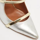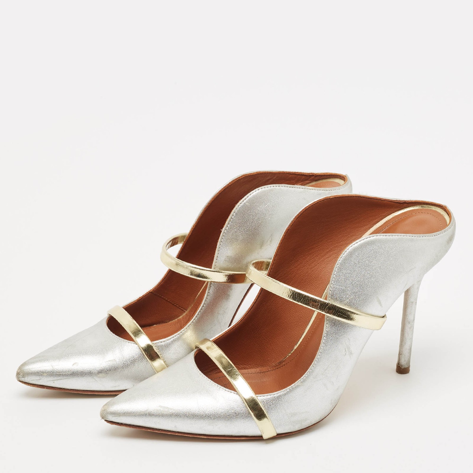 Our eBay Store About Us Contact Us Add to Favorite Sellers Malone Souliers GoldSilver Leather Maureen Pointed Toe Mules Sandals Size 37.5 A perfect blend of luxury, style, and comfort, these designer mules are made using quality materials and frame your feet in the most elegant way. They can be paired with a host of outfits from your wardrobe. Product Details Brand Malone Souliers Color Silver Includes The Luxury Closet Packaging Outsole Length 23.5 cm Outsole Width 8 cm Size 37.5 Certified by The Luxury Closet This item has gone through a detailed authentication process overseen by our experts. We offer a lifetime guarantee of authenticity on all our items. How We Check The in-house team of experts at The Luxury Closet is highly trained to verify the authenticity and the condition of the luxury products. They ensure that only 100% authentic items are put on sale.The evaluation process is unique with its own mix of assessment criteria and differs according to the category. Each item is evaluated based on the following combination of hallmarks, hardware, stitching, symmetry, material, craftsmanship, stamping, codes, hologram stickers, and packaging. Our authenticators also check if the items have been modified or amended (e.g., aftermarket diamonds, replaced batteries, repaired bags, etc.) International Buyers Import duties, taxes and charges are not included in the item price. These charges are the buyers responsibility. Please check with your country’s customs office to determine what these additional cost will be prior to buying.
