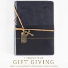Capture Memories, Thoughts and Ideas ’s black writing journal is a lined notebook that is perfect for taking sermon notes, gathering thoughts during Bible study and personal quiet times, prayer journaling and reflection. The book-bound notebook is also ideal for a travel log and daily diary. Inspirational Cover Embossed with a scripture passage and 'Man of God’, our Christian men’s journal cover is made with soft faux leather for a vintage look. Thin straps allow the journal to be held closed and are adorned with ornaments: a cross and a tag with a thought from Joshua 1:9. Premium Lined Paper Our journaling notebook is filled with narrow-lined paper that is exceptionally smooth so you can write freely. The Bible verse I Timothy 6:12 appears on the bottom right of every -page spread, encouraging faith and courage. Each creamy page also features a gold gilded edge. Makes a Meaningful Gift Our Christian journal makes an excellent religious gift for men. The writing journal is a thoughtful gift idea for grandfathers, fathers, sons, mentors, pastors and church leaders. Collect Your Thoughts - Beautifully bound in a faux leather wrap, the black journal notebook provides plenty of space for daily journaling, Bible study or sermon notes. Use the smooth-lined notebook pages to record prayer requests and answers, as a travel diary and more. Beautifully Embossed Cover - Inspiring faithful men, the black journal features 'Man of God” embossed on the cover above the scripture I Timothy 6:12. Wrapped in a rich faux leather cover, the bound journal is also secured with a leather-like strap with decorative lacing along the spine. Inspiring Bookmarks - Mark important notes to review, memory verses to work on or the next open page for daily diary entries with of the travel notebook’s included bookmarks. Attached with a thin leather strap, the vintage-style bookmarks are made with antiqued metal and include ornate cross charm and dog tag featuring Joshua 1:9. Smooth Premium Paper - Keeping notes neatly organized, the men’s journal includes 160 lined pages with the Bible verse printed on the bottom of each -page spread. Each daily journal page is made with high-quality cream paper with gold gilding. Perfect for Gift Giving - A thoughtful Christian gift, the rustic prayer journal for men and boys is ideal for Father’s Day, holidays, birthdays and to celebrate special occasions and events.