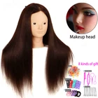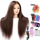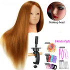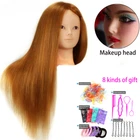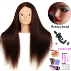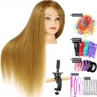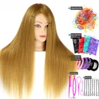 Mannequin Training Head With Stand Mixed 85% Real Hair For Makeup Practice Cosmetology Dolls Head For Hairdressers Hairstyles Hair Material: 85% Mixed Real Human Hair which is not so smooth and a little rough Head Type:Head For Hairstyles ,Hair For Dolls Hair Length: 24inch(60cm) Hair Color: Blonde,Brown Color Head Advantage: Muti-functional: suitable for washing/conditioning, curling/straightening, cutting, braiding and hair-styling and make up, but not for Bleaching and Dyeing. Can I put makeup on this one ? Yes. You can use regular makeup to practice. You'll be able to wash it off with regular makeup remover. But you'd better not use oil cosmetics. For example, eyeliner and so on. If you need to colorful painting on the face, you need to use professional banana oil. If you don't have it, the face won't be cleaned. TIPS : 1. How to maintenance the hair: Use warm water, shampoo and hair conditioner will extend the service life of the wig. 2. It suitable for curling / straightening, bleaching / dyeing, washing / conditioning, cutting, braiding and DIY hair styling; 3. It is common for losing a little hair for the first time using, recommend to use wide tooth comb and it won't happen the next time. 5. Any question or not satisfied, please contact us directly!