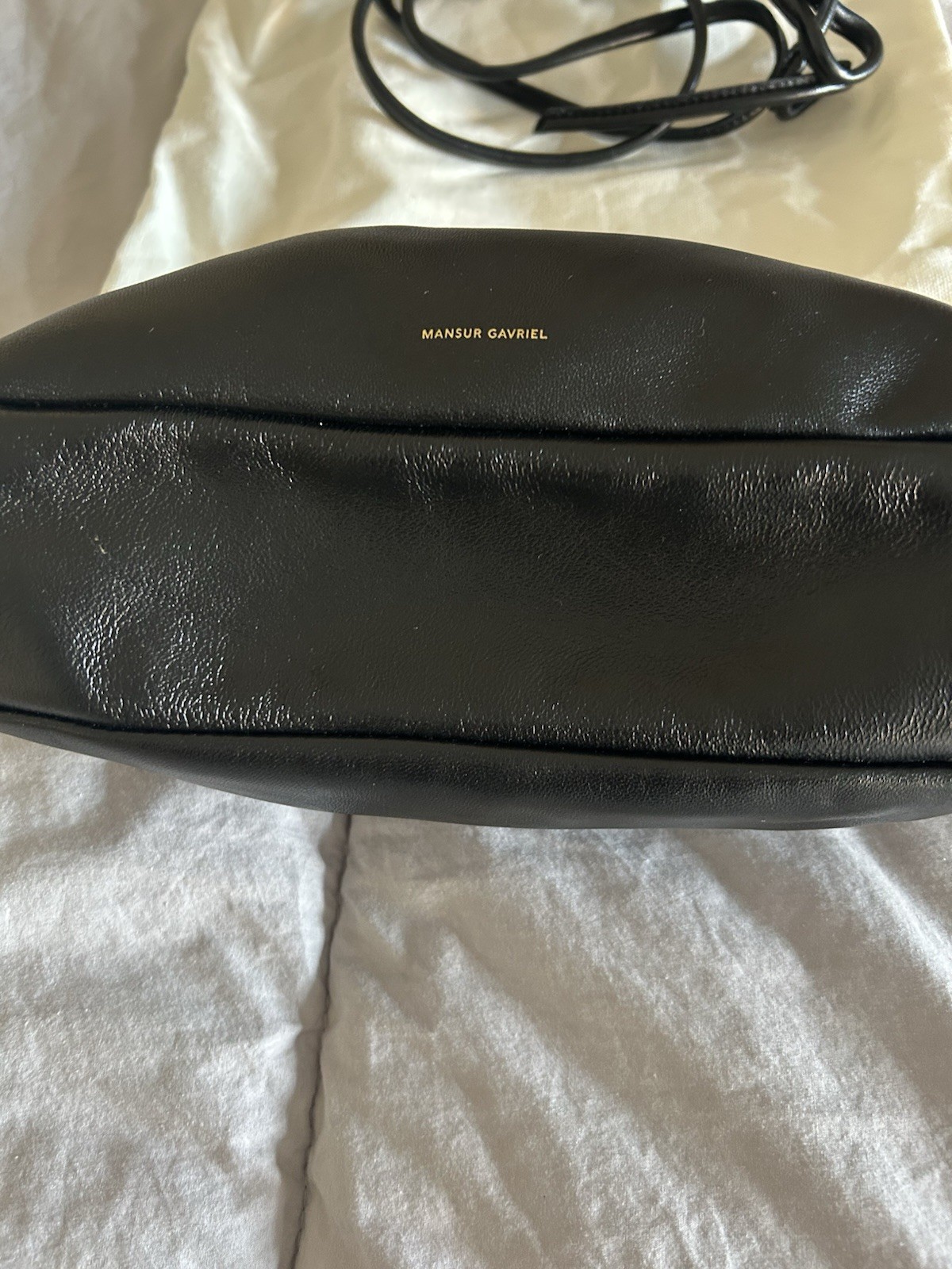 The Mansur Gavriel Mini Leather Clutch in black is a stylish and versatile accessory for women. Made from high-quality leather, this clutch features a solid pattern and a mini size, making it perfect for carrying essentials. It includes a detachable strap for added convenience and comes in its original dust bag, ensuring its pristine condition. With its sleek design and classic style, this clutch is a must-have addition to any wardrobe.