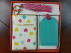 Mara Mi Fun Brights Travel Set ~ born wanderer Travel in style with this colorful and bright passport case, luggage tag that sports 'born wanderer' script and a fun pink tassel key chain charm. Includes: Passport Holder Case Wallet Organizer Luggage Tag Tassel Key Chain Charm Colors: Turquoise, Aqua, Mint, Light Blue, Yellow, Pink, Orange, Gold, White Colorful Faux Leather Size: passport case - 3.75 x 5.25 inches luggage tag - 2.75 x 4.5 inches Condition: new, never used in open package; package shows light signs of wear; package has been opened; please see photos for full description. Smoke-free home.