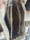 The Marc Jacobs The Canvas Small Tote is a stylish and versatile handbag perfect for casual occasions. Made from durable canvas material in a solid beige color, this rectangular-shaped tote features a medium size with double beige handles and silver hardware accents. The zip closure and inner pockets add practicality to the classic designer bag, while the detachable strap offers flexibility in styling. The matte finish and iconic Marc Jacobs branding make this tote a chic and timeless accessory for any outfit.