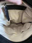 The Margot Black Shoulder Bag is a stylish and versatile accessory for women. Made from leather with a solid black exterior, this rectangular-shaped bag features a black shoulder strap and silver hardware accents. The beige lining adds a touch of elegance, while the zipper closure and inner pockets provide functionality. Perfect for everyday use or a night out, this shoulder bag by Margot is a must-have for any fashion-forward woman. Size 10 x 9 inch. Has two little stains on the inside may be removed with a Tide stick. ?