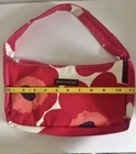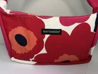 Add a bold pop of color to your wardrobe with this authentic Marimekko shoulder bag. Featuring the world-famous Unikko floral print designed by Maija Isola, this bag captures the vibrant spirit of Scandinavian design. Crafted from durable, heavyweight cotton canvas, it features a single wide shoulder strap and a secure top zipper closure. Its compact, curved shape makes it an ideal everyday baguette bag or a standout accessory for special occasions. Condition: Pre-owned: Never used with no major flaws. Interior is clean and everything is in excellent condition