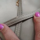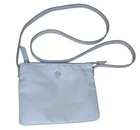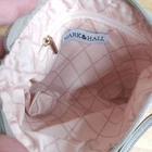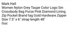 Mark Hall Women Nylon Grey Taupe Color Logo Sm Crossbody Bag Purse Pink Diamond Lining. Zip Pocket Brand tag Gold Hardware Zipper Size 7.5" x 6" strap length 48" Guc