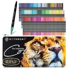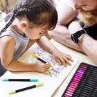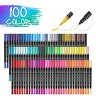 100 Colors Dual Brush Pens Colored Markers with 0.4mm Fine-Liner Tip and Highlighter Brush, Kid Adult Coloring Markers for Painting Lettering WHAT YOU GET - 100 unique colored markers + 1 Gift Metal Tin Box + 1 Coloring Book. each pens body has a unique number and color name for easy color identification. You don't have to worry about finding the colour during the painting process. DUAL TIPS DESIGN - 0.4 mm fine tip for provides accurate line control for drawing, lettering and sketching, 1-2 mm nylon fiber brush tip for broad writing, coloring, filling in and blending. Artists love to use our brush tip markers because clean thick or thin lines can be achieved with ease. SAFE NON-TOXIC INK - The dual brush markers can last a long time use, which has 1.5g large capacity ink, unlike other pens with only 1.2g of ink. The ink is odorless, acid-Free, non-Toxic and Conforms to ASTM D-4236. And the most important, NON- BLEEDING! MULTIFUNCTION ARTISTS BRUSH PENS - These brush tip markers are perfect for adult coloring books, drawing, lettering, sketching, doodling and just about anything else. Great coloring markers gift ideas for artists, beginners, kids, girls. GIFT METAL TIN BOX - The coloured markers are packaged in a beautiful metal tin box and the built-in plastic tray keeps the markers organised and protected. NOTE: After using the marker, please close the cap in time to prevent the surface of the marker tip from drying out and affecting its proper functioning the next time. If this happens by accident, close the cap and wait a while, it will return to normal automatically.