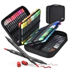 Dual Markers Brush Pen, Colored Pen Fine Point Art Marker & Brush Highlighter Pen for Adult Coloring Hand Lettering Writing Planner Art Supplier BRUSH & FINE, DOUBLE TIPS, DOUBLE CREATIVITY: markers for adult coloring books are a must-have for your masterpiece. The 0.4mm fine tip can glide through the details for intricate coloring, writing, while the 1-4mm soft brush tip flows through the large area art projects for shading, coloring, blending gradient and more, perfect for calligraphy and creating interesting pattern to design your journal. NON-BLEEDING INK, PERFECT FOR COLORING BOOKS & JOURNALING: The real advantage of water-based markers is that they no bleeding, No matter what paper you use. It won't bleed beyond the line or destroy the next pages. art pens can be well completed color your coloring book and design your journals planner Calendar and Lettering. ACID-FREE & NON-TOXIC & NON-Pungent Odor WATER-BASED INK: The highly pigmented acid-free allows your artwork to last against fading. Water based ink has NON-TOXIC & NON-Pungent Odor, making children and adults feel comfortable when creating masterpieces, water-based and conforms with ASTM D-4236, which is 100% safe for both you and your kids. 80 VIBRANT COLORS CODED WITH NAME FOR FINDING COLORS FAST: This dual brush markers set includes 80 vibrant colors, and each pen is name for easier finding your preferred colors. Large CAPACITY WATER-BASED InK & TRAVELING CASE :markers are loaded with a large capacity of water-based ink, and you can clearly feel that our pens are very durable. Our markers are packed in a sturdy and durable case for better storage and organization. You can bring your marker to anywhere, which is very convenient.