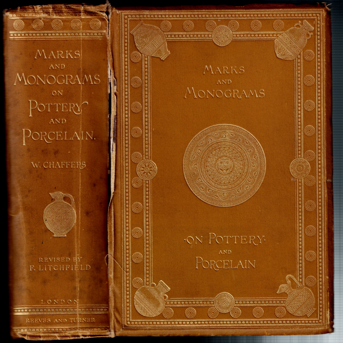 Marks and Monograms on European & Oriental Pottery & Porcelain ; Chaffers 1906 Marks and Monograms on European & Oriental Pottery & Porcelain ; Chaffers 1906 This copy is in ACCEPTABLE condition, it requires re-binding. It makes a good reading or reference copy as is. No dust-jacket. The front board is remains attached only by a small piece of cloth. The front and rear hinges are cracked. The text block is intact and in good order. The pages have light foxing. There is an inscription on the first endpaper. Click here to visit PATRICK ANDREAS QUALITY BOOKS Store Home Page .