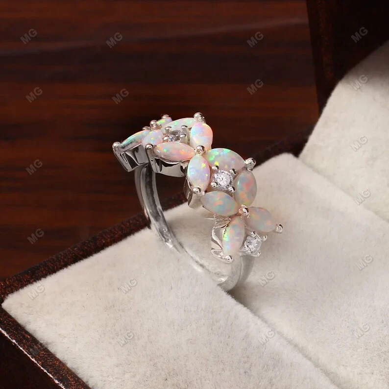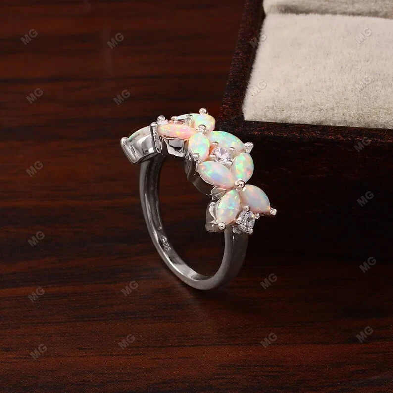 PRODUCT DESCRIPTION Marquise Opal Floral Wedding Band Engagement Opal Ring 925 Sterling Silver Ring. Specification: Stone Name- Opal Stone Size - 2x4 mm Stone Shape - Marquise Shape Stone Cut - Faceted Stone Color- White Accent Stone - CZ Diamond Metal- 925 Sterling Silver Finished With Rhodium Method- Cast Personalization- Possible Occasion- Engagement Stone Style- Crown Band Ring Size: We make rings from US 4 to US 16. (If you need smaller or bigger ring size, please ask me to resize) Country of Manufacture: India PAYMENT METHODS We accept Payoneer and the rest other modes of payment are also accepted. It is easy and safe for you to pay by credit cards, debit cards, bank transfers, and Payoneer account balances. Payment should be made within 2 days after the winning of the item. SHIPPING POLICY US shipping - Free Shipping International-Free Shipping Each item is individually packed securely with quality products to help ensure safe and undamaged delivery. We ship within 1 business day after payment is received. Delivery is generally within 10-15 days worldwide after shipping. In rare cases, it makes take up to 2-3 weeks for delivery depending upon the destinations and customs regulations in your country. All packages have a duly filled customs declaration form to avoid any delay in customs. RETURN POLICY Your satisfaction is of the utmost concern to us. Should you need to return an item, you can do so within 30 days of receipt of the item for a full refund. Return shipping charges are not reimbursable. All items must be in their original condition, not worn or altered. Please contact us if you would like to initiate a return, so that we may guide you through the process. We can be reached through the "Ask a Question" link on the listings. FEEDBACK We strive for 100% Customer Satisfaction and we always leave positive feedback to our buyers. Please help us maintain our business and give us a 5-Star rating. If you still think that you still can?t leave a 5-Star across the Board, please email us or call us and we assure you that your issue will be resolved immediately. We believe in solving the issues. Positive feedback represents our service, product quality, and dedication to customer satisfaction. Our future business depends on your satisfaction or positive feedback with a "5-star rating". Thank you !!