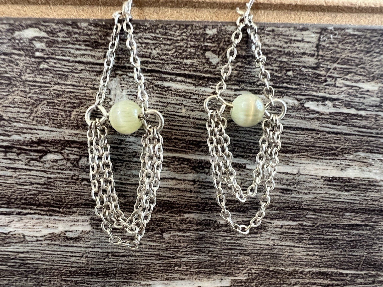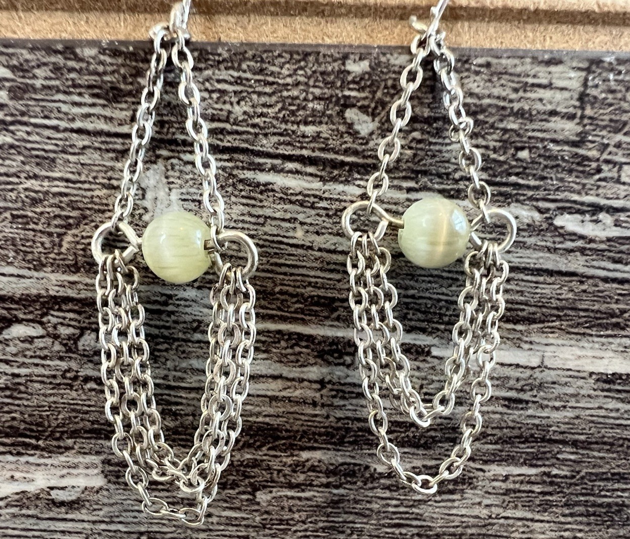 Marsala Sterling Silver Fish Hook Dangle Earrings Chain Bead Lightweight New Multi chain with yellow colored bead in the center. Extremely lightweight/on eight year wire/fish hook style Measurements approximately in inches 1.75 in length .5 in width Ships next day Monday through Friday