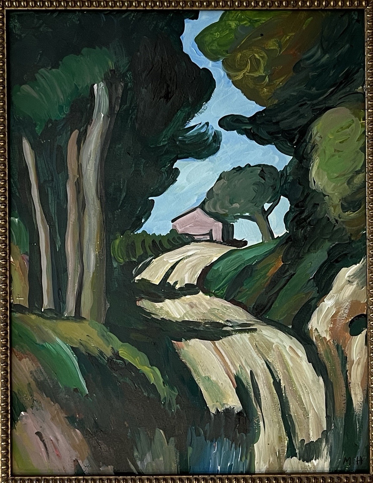 Marsden Hartley appears in Lower right. in Style of /Attribute to Marsden Hartley Technique: mixed media /oil on paper Measures: 24 x 21 inches Frame size and 13.50 x 10.50 inches Image size Medium: Paper. Provenance: Private Collection. Marsden Hartley (January 4, 1877 - September 2, 1943) was an American Modernist painter, poet, and essayist. Hartley developed his painting abilities by observing Cubist artists in Paris and Berlin. Hartley was born in Lewiston, Maine, where his English parents had settled.