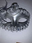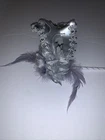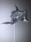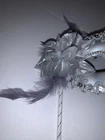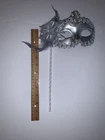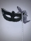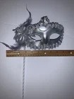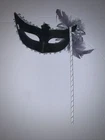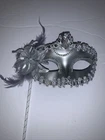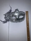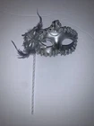 Masquerade Eye Mask Silver Feathers Flower Sequins Stick Mardi Gras Halloween .