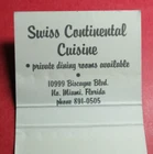 30 Strike (2 1/8 inch) matchbook cover from a vintage Biscayne Blvd. Miami restaurant. This cover is from the 1970s. They served "Swiss Continental" cuisine. See my feedback and buy with confidence.