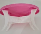 2008 Barbie Dream House replacement oval coffee table N7666 - pink and white - approximately 4.5" x 3" x 2.5". May have some slight scratches/scuffs from playing and age. Pease check out the photos as they are of the actual item(s) you will receive. Look them over carefully for any flaws or defects. We do our best to point out all defects or flaws in the photos and description when listing. If you have any questions please contact us. If you are satisfied with our product and service please leave us positive feedback. Positive feedback really helps with promoting our page. Thank you for looking.