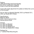 You may also like Bumper Tow Hook License Plate Mount Bracket Fit For BMW F30 F32 F10 3/4/5 SERIES 21.85 USD Free shipping Bumper Tow Hook License Plate Mount Bracket Holder For Mazda3 Mazda6 CX5 MX5 USA 24.85 USD Free shipping Door Hinge Pin Bushing Kit For 1994-2004 Chevy S10 GMC S15 93356553 2 Door US 16.85 USD Free shipping Front Bumper Tow Hook License Plate Mounting Holder Bracket Fits VW Golf 6 AT 21.85 USD Free shipping MatteBlack Side Window Louver For 13-18 Scion FRS BRZ Toyota 86 GT86 AE86 40.85 USD Free shipping New Front Bumper Tow Hook License Plate Mounting Holder Bracket For VW MK6 Golf 24.85 USD Free shipping Rear Light & Right Bumper Red Reflector For VW Transporter Multivan T5 03-10 15.85 USD Free shipping Feature: 100% Brand New And Good Quality No drill or modification required Screw in from the tow area/hole Come with angle adjustment for plates to follow the curve of the bumper Fits for 2014-up Mazda3 Mazda6, 2013-up Mazda CX-5, 2016-up Mazda MX-5 Miata Specifications: Material: Metal Color: color as picture show Size:As picture show Fitment: For 2014-up Mazda3 For 2014-up Mazda6 For 2013-up Mazda CX-5 For 2016-up Mazda MX-5 Miata Package list: 1 * License Plate Mounting Kit -About US Founded in 2012, VIPJQ have professional development and sales, and are involved in various products, providing customers with various high-quality products. Since its establishment, VIPJQ has always adhered to the service concept of "customer first" and the management concept of "pursuit of quality", and is committed to providing customers with high-quality original designs. We commit to provide you the best innovative, quality products & professional services with competitive prices. We value every customer, and we look forward to providing solutions for your business needs to help your business achieve its goals, please contact us immediately! We are all about you! We are a Japanese seller,but with large warehouse in USA. We are profesional on Auto Parts,Car Parts,Motorcycle Parts,3C,other hot sale items and so on. We aim to provide to customers high quality product and best service. -About Shipment&Returns The item usually will be dispatched within 3 days after you ordered.All are free shipping. And it usually takes 3-10 working days to delivery depends on buyers' address or other majeure on the way. If you are not satisfied with the items and want to return the item,we hope you could message us first,we will give you the return details, we think we could give you the best service to save your time and money.Thank you. -About Feedback&Customer Service If you are enjoy your shopping here,not only enjoy the items but also the service,we are appreciate you could give us a 5-star feedback. If you are not satisfied with the item,before you give us the negative feedback,we hope we could give you the best solution through our commutication. We think we could do it if you give us the chance.Thank you.