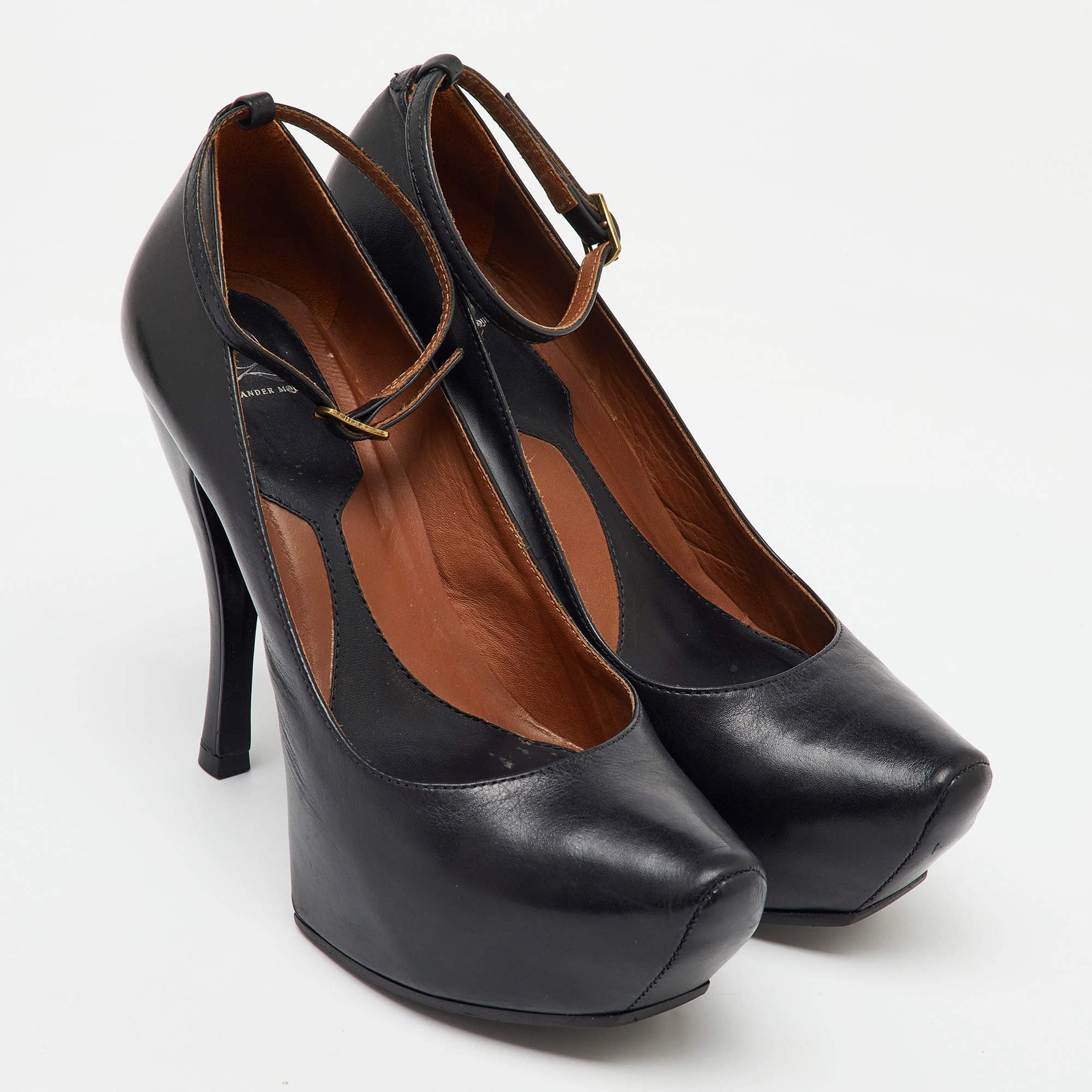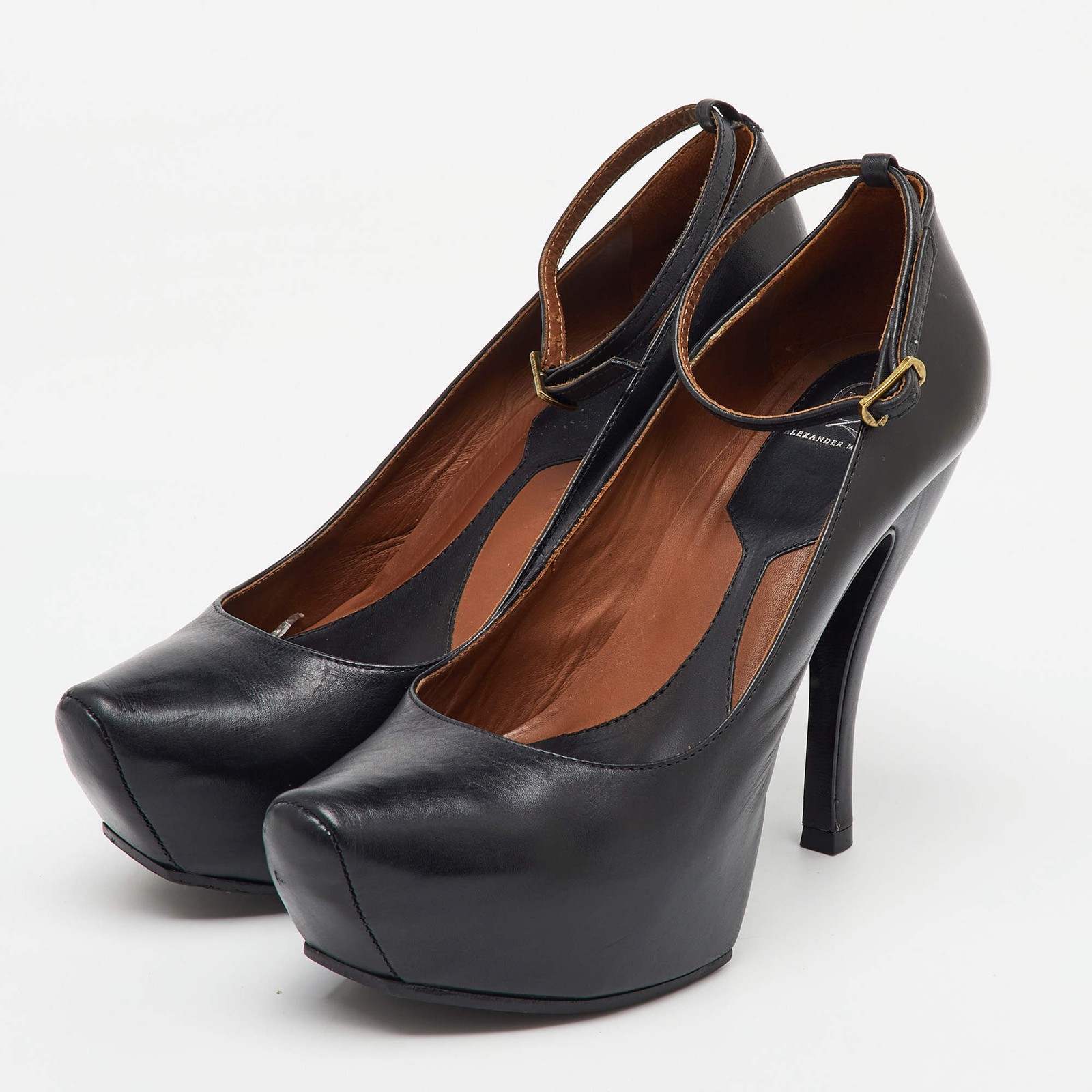 Our eBay Store About Us Contact Us Add to Favorite Sellers McQ by Alexander McQueen Black Leather Burlesque Ankle Strap Platform Pumps Experience timeless elegance with these black leather ankle strap platform pumps. Expertly crafted by McQ, an offshoot of the iconic Alexander McQueen brand, these shoes exude sophistication with every step. Made entirely from luxurious leather—from exterior to sole—they boast craftsmanship, showcasing impeccable detailing. The subtle platform adds a touch of drama, while the sleek buckle closure ensures a perfect fit. Revel in a versatile elegance, seamlessly elevating any ensemble with modern finesse. Product Details Brand McQ by Alexander McQueen Color Black Includes Original Box, Original Dustbag, Extra Heel Tips Outsole Length 23 cm Outsole Width 6.5 cm Size 38 Certified by The Luxury Closet This item has gone through a detailed authentication process overseen by our experts. We offer a lifetime guarantee of authenticity on all our items. How We Check The in-house team of experts at The Luxury Closet is highly trained to verify the authenticity and the condition of the luxury products. They ensure that only 100% authentic items are put on sale.The evaluation process is unique with its own mix of assessment criteria and differs according to the category. Each item is evaluated based on the following combination of hallmarks, hardware, stitching, symmetry, material, craftsmanship, stamping, codes, hologram stickers, and packaging. Our authenticators also check if the items have been modified or amended (e.g., aftermarket diamonds, replaced batteries, repaired bags, etc.) International Buyers Import duties, taxes and charges are not included in the item price. These charges are the buyers responsibility. Please check with your country’s customs office to determine what these additional cost will be prior to buying.