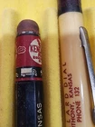 2 working Mechanicle pencils, both are from Anthony Kansas. 1. Is Kendall oil with a Kendall oil can topper. From the K-T oil corporation, Anthiny Kansas. Willard Dial , Agent 2. SOVEREIGN Service Station fit for a King Oil topper . Anthony Kansas. Williard Dial phone 132. Both are good working Mechanical pencils. Please check out the pictures and please check out my other auctions for more vintage cool pens and pencils. Thanks for Looking.