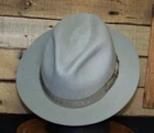 Very Nice Hat's of the Belfry Fedora Size med. Color gray Excellent condition49.00 95% perfect 5 in. center dent crown 2 1/4 brim Grosgrain band Awesome Hat Great Price