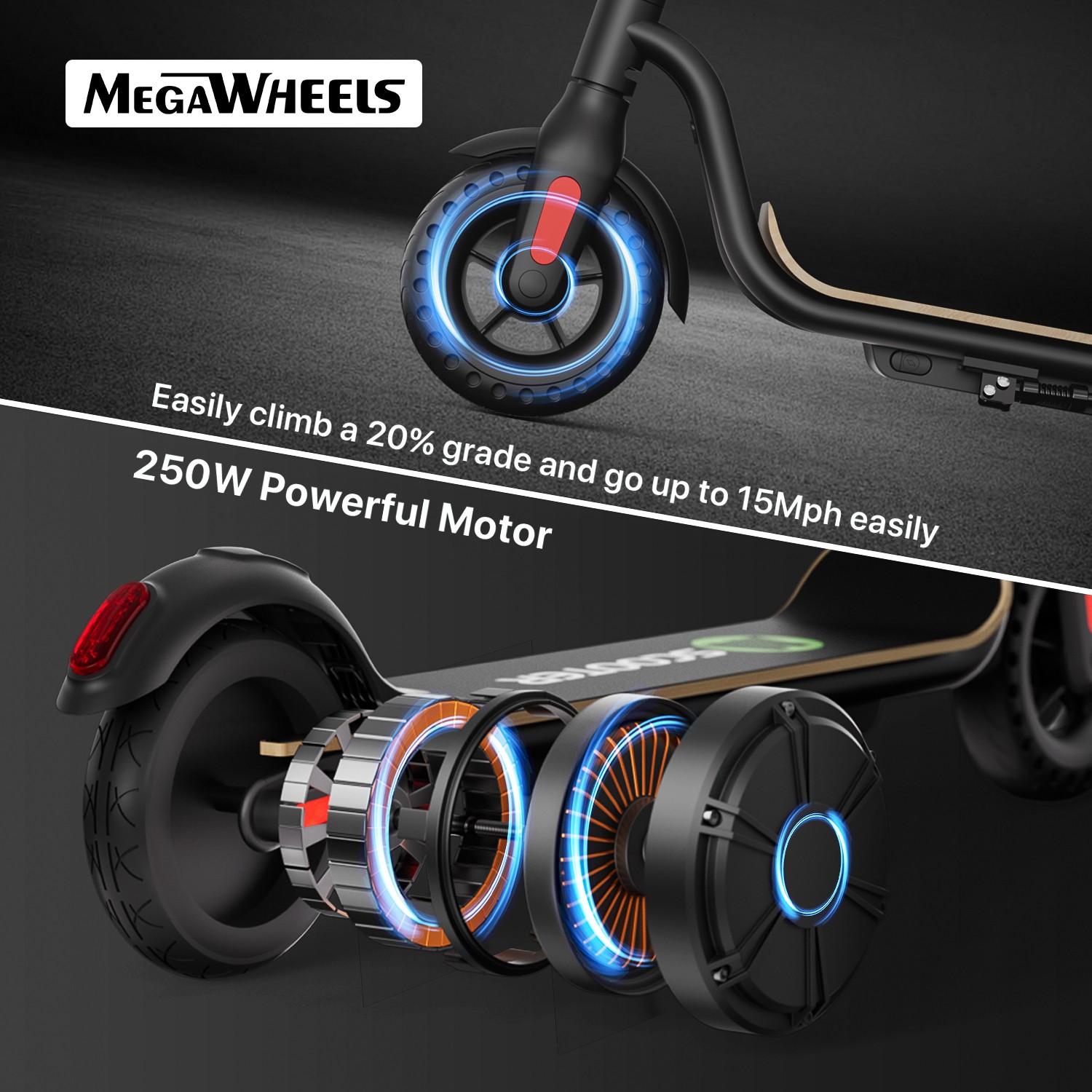 Features: 【Anti-puncture solid tires】The electric scooter uses 8.0-inch honeycomb shock-absorbing tires with high elasticity and wear resistance. The honeycomb tire does not require inflation, repair, maintenance.And it's don't worry about punctures.It also has a good anti-slip effect. 【Three gears with headlight & rearlight】Three gears (6.25MPH=10KM/H, 12.5MPH=20KM/H, 15.5MPH=25KM/H), easy to change through a button on the LED display which also shows the battery and the gear clearly. The low-speed gear prevents teenagers or children from driving too fast. LED Headlight and rearlight double insure your safety at night. 【High level security】This S10 electric scooter applies dual brake system (a motor electronic brake on the handlebar and a foot friction rear brake on the back wheel) with CE/UL/FCC/RoHS safety certification. The pedal is made of Malleable Maple Wooden, which is more durable. You can easily cross all kinds of roads, reduce bumps and keep you feel comfortable. 【None-0 start】The electric scooter applies a none-0 start for the safety consideration, please scroll for a distance to start. Features a bigger and longer deck, a double braking system, a long-range battery, and a One-step portable folding mechanism, the Megawheels electric scooters can bring a smooth and comfortable riding into your way.We provide professional technology support. Any question, just contact us, we will reply in 24 hours with satisfying solutions. Specification: Brand: Megawheels Model: S10 Dimension: Unfolding 105 x 43 x 118 cm; Folding: 105 x 43 x 48 cm Net Weight: 11.9kg Color: Black Frame Material: Aluminium Tires: 8.0" Honeycomb Front Tyre & Solid Rear Tyre Max speed: 15MPH Speed level: Gear 1--Max 6MPH; Gear 2--Max 12MPH; Gear 3--Max 15MPH Grade Ability: 20 degree slope Working Temperature: -15°C-50°C Storage Temperature: -20°C-25°C Mode Type of Motor: Brushless hub motor Battery Type: High quality lithium battery Battery Voltage: 36V Charger Input Voltage: 100V-240V Charger Frequent: 50Hz/60Hz 5.2AH Version Mileage: 8-12KM Max Load: 100kg Charging time: 3.5 hours Battery Capacitiy: 5.2 Ah 7.8AH Version Mileage: 17-22KM Max Load: 100kg Charging time: 5 hours Battery Capacitiy: 7.8 Ah Package Contents: 1 * Folding Electric Scooter 1 * Battery Charger 1 * User's Manual Note: This products have been certified under UL2272 safety standards. NOTE:The appearance of the product you receive may vary slightly from the image shown due to differing production batches! Riding Skills: -Put your foot in the front of the scooter and the other foot on the floor before riding. -Make sure that the riding route is smooth. -Slide forward with the food standing on the floor before starting (like riding the scooter without power). -Immediately press the acceleration button and lean forward to avoid falling over backward due to inertia, so that the electric scooter will enter the working status. -Avoid pressing the handle with your body in the acceleration and deceleration process. Put one foot ahead and the other behind (like on the sliding plate/surfboard, put one foot ahead and the other behind by 70-90 for better comfort). -Turning – The turning principle of the electric scooter is the same with that of surfboard/sliding plate/skis. The handle shall be balanced with the body. Observe and make sure that turning is safe before turning. On Jul 11, 2025 at 08:06:00 PDT, seller added the following information: