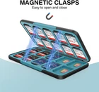 Memory Card Case for SD Card and TF Card , Portable SD Card Holder SD SDHC SDXC TF Card Storage with 20 SD Cards Slots & 20 Micro SD Cards Slots. Description Shell Type Hard Color Black Form Factor Case Compatible Devices Memory Cards 【LARGE CAPACITY】This memory card case can store 20 SD Cards & 20 Micro SD Cards to meet your daily memory cards storage needs. 【STURDY & DURABLE】Made of high ABS plastic and soft silicone lining, which can effectively protect the card from impact. 【MAGNETIC CLASPS】Built-in magnetic clasp design makes the SD card case easier to open and access. 【PORTABLE DESIGN】The micro SD card holder is lightweight and small size, you can easily put it in your backpack for easy portability. 【WARM TIPS】PLEASE NOTE: Memory SD card or micro SD card is not included.Package Included:1 x SD Card Case. Product Description Memory Card Case for SD Card and TF Card , Portable SD Card Holder SD SDHC SDXC TF Card Storage with 20 SD Cards Slots & 20 Micro SD Cards Slots.