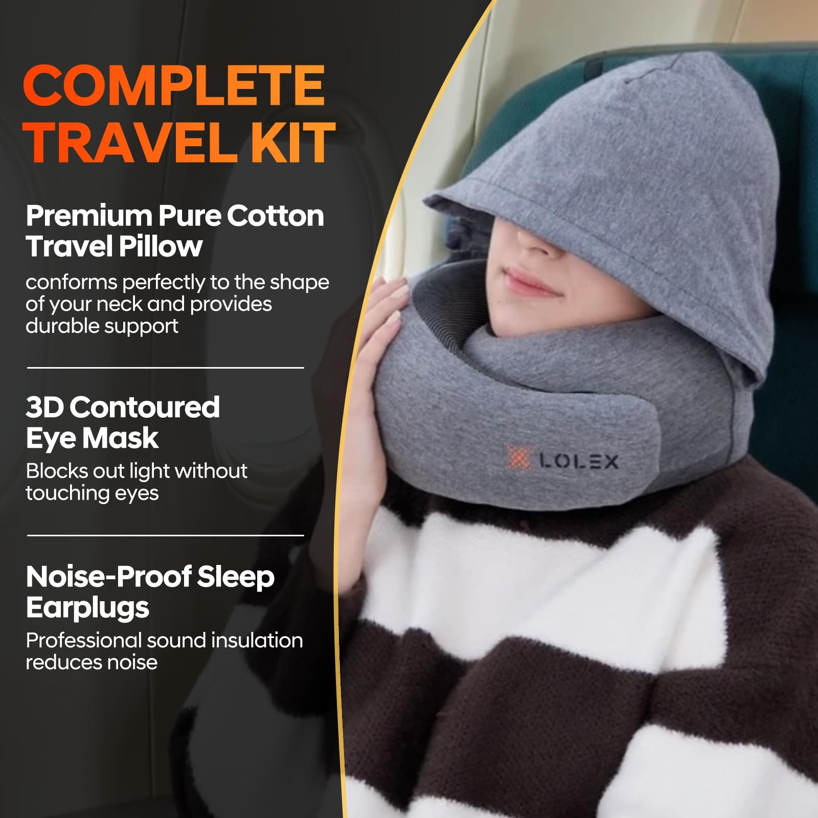 【Neck Pillow】The travel pillow with its chin wrap, which you can maintain an upright posture and can reduce neck, shoulder and back discomfort caused by traveling in cars and airplanes. 💖【MAXIMUM PRIVACY & LIGHT-BLOCK】Imagine slipping into your own cozy sanctuary, even in the middle of a crowded airport. The Hooded Pro model features an adjustable hood that blocks out light and adds an extra layer of PRIVACY. It creates a cozy personal space, helping you rest undisturbed and arrive refreshed. 💖【WHAT MAKES STAND OUT】The fabric is made of PURE COTTON. While many travel pillows in the market use Polyester (which is scratchy and synthetic), we chose cotton because it is more skin-friendly, breathable, lightweight, and comfortable. When you touch it, it feels very soft which will make your skin very happy. 💖【ERGONOMIC DESIGN WITH MEMORY FOAM】The Neck Pillow provides 360° support, preventing your head from falling forward and reducing neck discomfort. Made with high-resilience memory foam featuring 5-second return technology, it adapts perfectly to your neck’s shape, ensuring customized support wherever your journey takes you. 💖【PORTABLE & CONVENIENT】Designed for easy travel, the Airplane Pillow can be compressed and stored in the luxurious small carry bag, which easily snaps onto your luggage. Its compact and user-friendly design allows you to travel in peace, whether by plane or car. 💖【GREAT GIFT IDEA】The Neck Travel Pillow is an excellent gift for anyone who loves traveling. Its superior comfort makes it a thoughtful and practical present for friends, family, or colleagues who appreciate restful travel. Let’s wrap it up for birthdays, holidays, or special occasions.