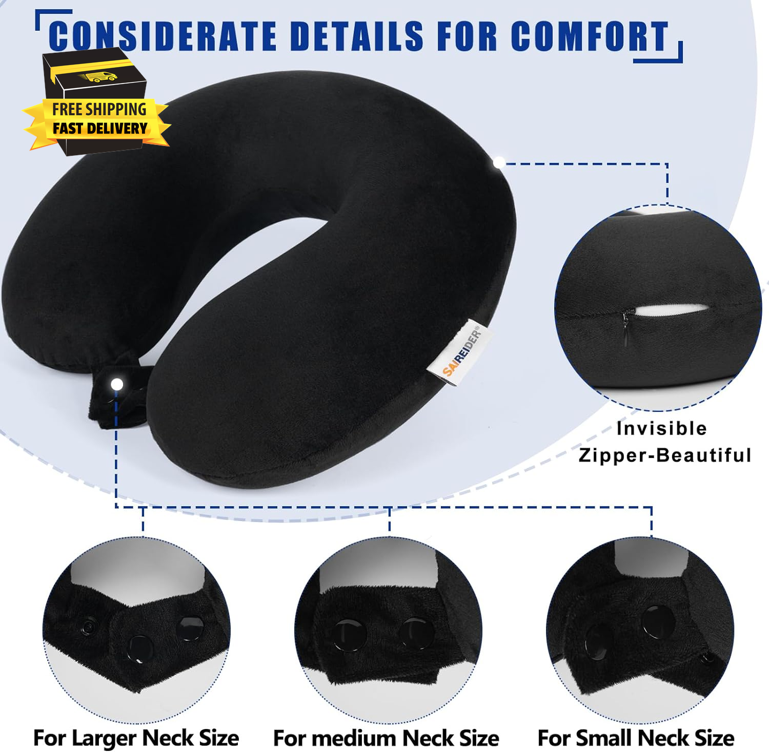 Store New Arrivals Add to Favorite View Feedback Contact Travel Pillow 100% Pure Memory Foam Travel Neck Pillow, Airplane Pillow for Traveling、Car、Home、Office,Washable Cover(Black) ⭐️⭐️⭐️⭐️⭐️ Description Item model number 202310TP02B Pattern Geometric Country of Origin China Item Firmness Description Soft Number of Pieces 1 Unit Count 1.0 Count Material Memory Foam Age Range (Description) Big Kid,Youth,Adult Specific Uses For Product Travel rest sleep Model Name SRC-TP02B Item Weight 14.4 ounces Fill Material Memory Foam Material Feature soft Special Feature Removable Cover, Compressible Color Black Shape Semicircular Use for Neck Recommended Uses For Product Resting Sitting Sleeping Traveling Product Dimensions 11.2"L x 4"W Product Care Instructions Machine Wash Size Universal dimensions Classic style:360 ° all-around support for your neck, head, and chin, Make your travel and rest easier High quality materials :100% Pure Memory Foam and Soft and skin friendly fabric Detail design: Three sizes for you to adjust, invisible zipper, Removable cover always clean Risk-free Try: We believe that you would like our travel pillow,But if you meet any problem or feel unsatisfied while using it, please feel free to contact us and we would provide a 100% satisfactory solution for you in 24 hours. Product Description 360 ° all-around support SAIREIDER Travel Pillow 360 ° all-around support for your neck, head, and chin, Make your travel and rest easier Premium Material Comfortable fabric The travel neck pillow cover material is ultra soft velour, which is much more friendly to our skin Machine washable The travel pillow cover is removable and washable, keeping you clean at all times pure memory foam Our travel Pillow is made of 100% pure memory foam, comfort and durable,cushions the body and relieves painful pressure points for ultimate relaxation Authoritative certification Our memory foam pillow core is certified by SGS authority, free of any harmful chemicals, and safe to use Comfortable For Travel&Rest Travel rest Office rest Check Out Other Products By SAIREIDER Add to Cart Add to Cart Add to Cart Add to Cart Add to Cart Add to Cart Add to Cart Customer Reviews 4.4 out of 5 stars 3,875 4.4 out of 5 stars 3,875 4.4 out of 5 stars 3,875 4.4 out of 5 stars 261 4.4 out of 5 stars 261 4.4 out of 5 stars 10,479 4.4 out of 5 stars 10,479 Price $29.95 $ 29 . 95 $22.95 $ 22 . 95 $22.95 $ 22 . 95 $19.95 $ 19 . 95 $19.95 $ 19 . 95 $15.95 $ 15 . 95 $9.99 $ 9 . 99 Material premium memory foam premium memory foam premium memory foam premium memory foam premium memory foam premium memory foam premium memory foam Key Features U-shaped coccyx cutout U-shaped coccyx cutout U-shaped coccyx cutout dual adjustable straps dual adjustable straps Travel Kit 360 ° all-around support Idea For Tailbone, lower back, legs Tailbone, lower back, legs Tailbone, lower back, legs Upper, middle, lower back Upper, middle, lower back chin,neck,head chin,neck,head Dimensions 18"x14"x2.8"; 13.8"x12"x5" 18"x14"x2.8" 18"x14"x2.8" 13.8"x12"x5" 13.8"x12"x5" 11.42"x11.42"x4.33" 11.4"x11.8"x3.9" Machine-washable Cover ✔ ✔ ✔ ✔ ✔ ✔ ✔ ABOUT US We offer the best prices around on high quality products. Our E-store includes media such as books, movies, music and games while offering electronics, toys, sporting apparel, clothing, tools, general home, garden items and more. SHIPPING We are always working hard to ensure your package arrives as soon as possible. Please understand that some factors like weather, high postal traffic, and the performance of shipping companies are outside of our control. We offer free shipping to the lower 48 states and ship within 2 business days of payment, usually sooner. We do not accept P.O. Boxes. Please provide a physical address. For shipping outside of the continental USA, we only use eBay's Global Shipping Program.The item is shipped to KY and then sent to the rest of the world. International customers are responsible for all duties and taxes. Continue to check out in order to calculate costs for shipping the item to your country. Messages regarding eBay's Global Shipping Program MUST be directed at eBay EXCLUSIVELY. RETURNS We offer a 30-Day Return Policy on items which you are not completely satisfied with. You have the option for a full-refund or an exchange of the item. No returns are available on items shipped outside of the USA. PAYMENT We accept PayPal. CONTACT US This page content is yet to come Please ad us to your favorite seller and visit again later Thank You CUSTOMER SATISFACTION We try our very best to make sure every customer is completely satisfied. If there's a problem, message us! We're happy to help. WE ACCEPT Copyright © 2021 AutoDS. | All Rights Reserved