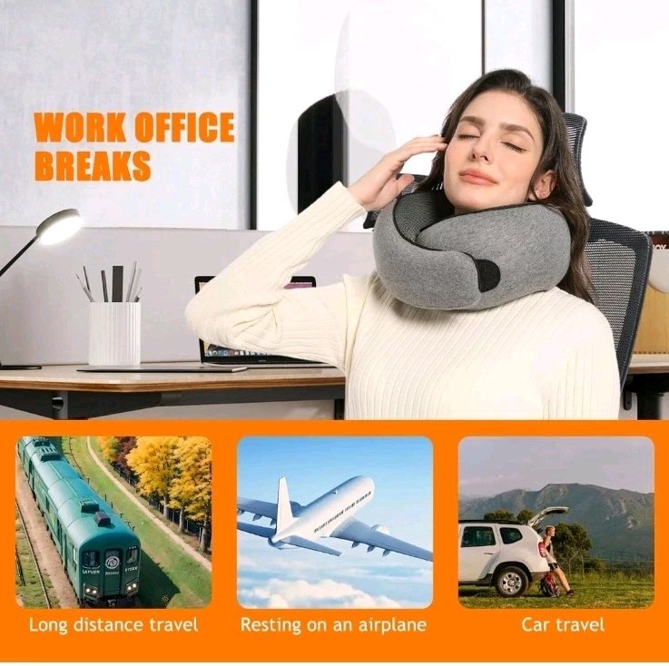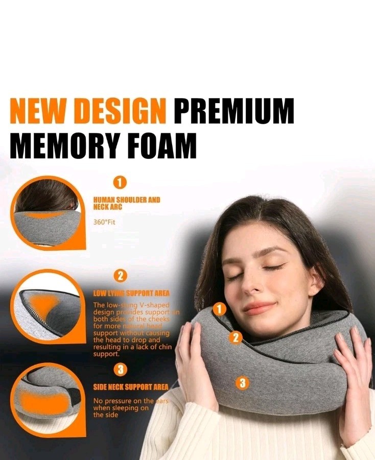 This travel pillow is designed to provide optimal comfort and support for your neck while you sleep. Made with memory foam, this pillow will contour to the shape of your neck, helping to reduce pain and discomfort. Whether you're traveling by plane, train, or car, this neck pillow is the perfect companion for a restful journey. The soft, plush material of this pillow makes it a pleasure to use, and its compact size makes it easy to pack and carry with you wherever you go. With its durable construction and high-quality materials, this travel pillow is sure to provide years of reliable use. Say goodbye to neck pain and hello to a good night's sleep with this memory foam neck pillow.