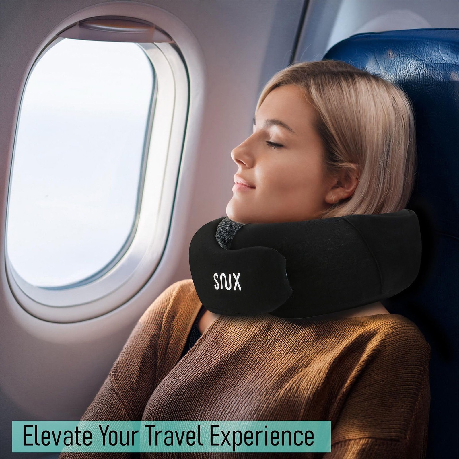 Elevate your travel experience with the Travel Neck Pillow, one of your must-have airplane travel essentials, designed to offer unparalleled comfort and convenience on the go. Whether you're on a long flight, a road trip, or simply need a cozy spot for a quick nap, this memory foam neck pillow for sleeping ensures you arrive refreshed and relaxed. Perfect for both airplane travel and car rides, the pillow is a versatile travel companion that provides superior neck support. It's ideal for those looking to avoid neck pain during long journeys or take a restful nap on the go. Pack smart, travel in style, and make the most of every journey. Looking for the perfect gifts for travelers? The Travel Neck Pillow is a thoughtful, practical choice that any frequent traveler will appreciate, ensuring they stay comfortable and relaxed wherever they go. 360° ERGONOMIC NECK SUPPORT: The contouring memory foam conforms to your neck and shoulders, providing exceptional support and cushioning from every angle. Say goodbye to stiff necks and discomfort during travel. HIDDEN HOODIE: Enjoy a private escape from the world with the integrated hidden hoodie. Perfect for blocking out light and creating a serene environment, it’s your personal mini sanctuary wherever you are. COMPACT & PORTABLE: Designed for the modern traveler, this pillow rolls up easily and stores in its included travel bag. Effortlessly stow it in your carry-on or backpack when not in use. STYLISH & SLEEK DESIGN: Available in classic black and sophisticated gray, the neck pillow adds a touch of elegance to your travel gear, making it a perfect accessory for any journey and an excellent choice for travel gifts. PREMIUM MATERIALS: Crafted from high-quality memory foam and soft, breathable fabric, this pillow ensures lasting comfort and durability, supporting you mile after mile.