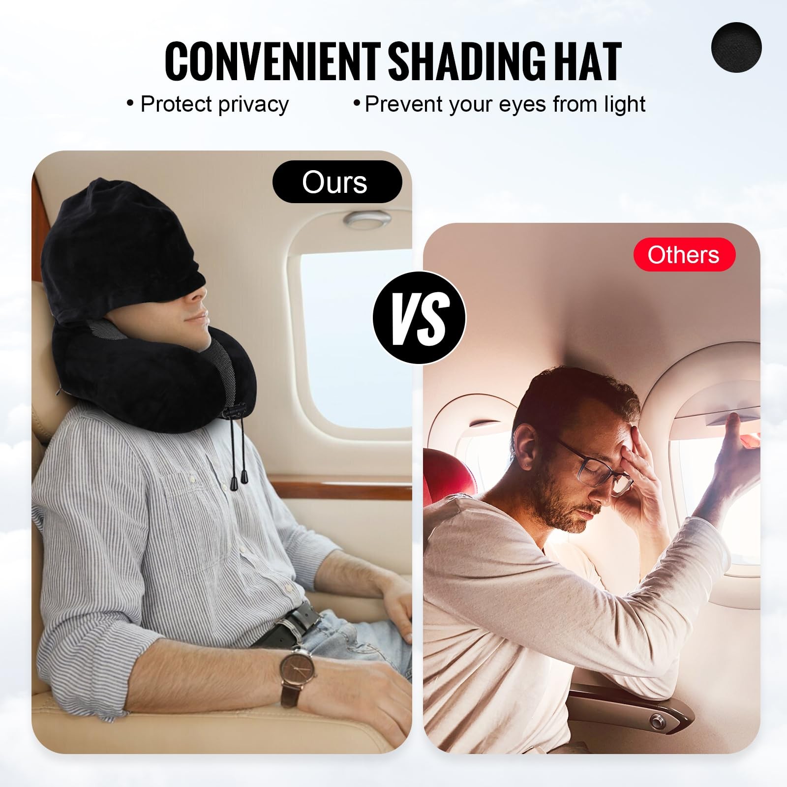 Ergonomic SupportThis travel pillow provides perfect neck support during travels, thanks to its unique and innovative ergonomic design which actively cradles your head and aligns it with your spine. Comfort and support is taken even further, thanks to the premium memory foam construction which can easily fall into shape no matter how long you've been out and about.Breathable & Comfortable FabricA breathable and comfortable fabric is specifically crafted to wick away heat build-up and further ensure maximum comfort, while also allowing quick and easy washing. An adjustable drawstring also features, allowing you to quickly adapt the level of support you need.Convenient CarryingIn addition, the pillow also comes with a easy-to-carry straps to confirm ultimate portability. Slip it into your bag and you're ready to go! COLD TIPS: Due to the colder temperatures, the travel pillow may feel slightly firmer than usual. We recommend allowing it to warm up before use for maximum comfort, or its comfort will improve when temperatures reach 70 degrees F or above. Happy travels New Hooded Design: The hood designed travel pillow helps block out the light, eliminating the need of an extra pair of eye masks, allowing you to rest better on the travel. In addition, the neck pillow included earplugs reduce external noise disturbances, further improving the experience of your rest Perfect Ergonomic Support: The neck pillow's hump design gives better and fuller support to your head and neck. U-shaped curve design on both sides can wrap your neck better. With the adjustable rope lock, you can find the perfect size for your neck, keeping your head from falling forward Velvet Exterior & Cooling Interior: Our airplane pillow's outer layer is luxury velvet, which is soft, comfortable, non-irritating, and odorless, the inner is magnetic therapy fabric, which is cool, breathable, sweat-absorbent, keeping your neck and face dry. In addition, the outer layer is removable and machine washable, making cleaning quick and easy, so the travel neck pillow will always provide the maximum comfort on your trip Premium Memory Foam: Our travel pillow is made of premium memory foam, which is comfortable, breathable with good elasticity. It has 5 seconds rebound technology, relieve pressure and cushion your body Using Tips: Before first use, take the plane pillow to the ventilation for 24 hours to eliminate the odor, which is a normal issue with memory foam material. The storage cap may be a little thick if the hood is stored, it may cause discomfort, so we recommend taking out the hood when using Perfect Travel & Relax Partner: Whether you are travelling by plane, car, train or bus, watching TV or reading at home, working or napping in the office, Cirorld memory foam travel neck pillow will provide effective support and much comfort