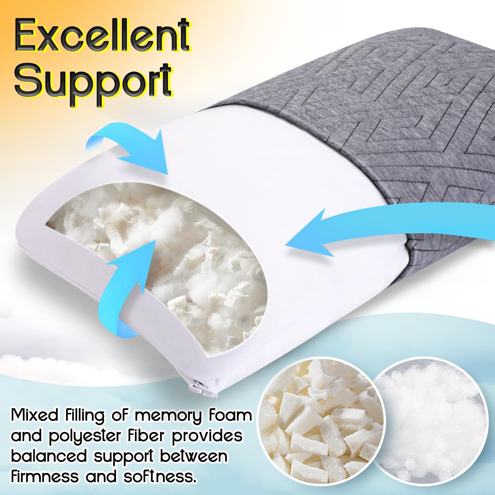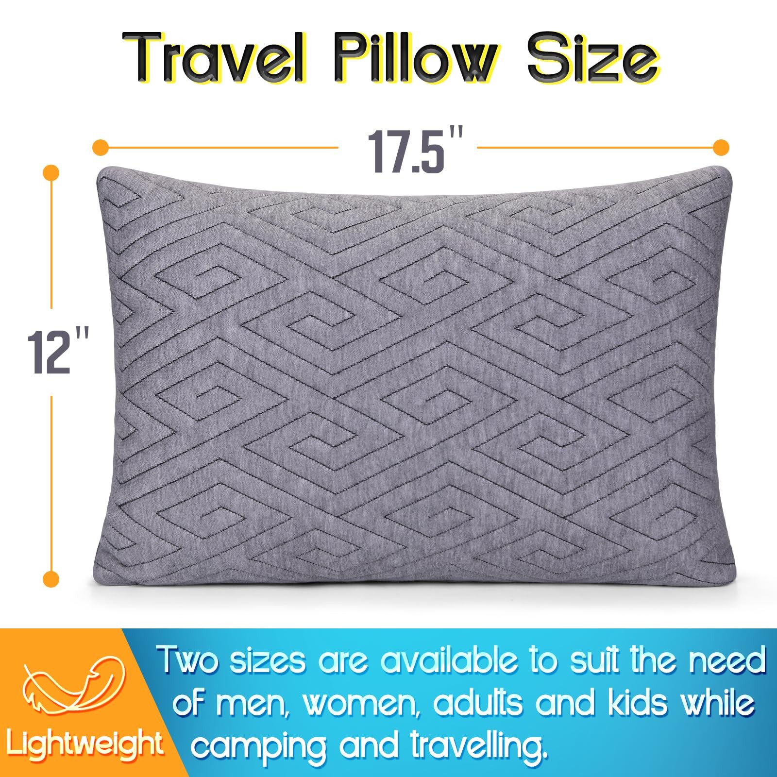 memory foam travel pillow Memory Foam Travel Pillow: Filled with mixed shredded memory foam and polyester fiber, our travel pillow provides balanced spport between softness and firmness, ideal for sleeping when travelling, camping, backpacking, hiking, airplanes and other outdoor activities. Zipper designs allow you to easily adjust pillow filling for ultimate comfort Breathable and Soft: Crafted with premium microfiber pillow cover, the camping pillow is super soft to touch and of great breathability, keeping you cooling and fresh, perfect to use in all seasons Compact and Portable: Measuring 17.5” L x12” W and coming with a practical travel bag, you can easily carry this small pillow for camp or travel. Two sizes are available for adults and kids as camping essentials, using together with your sleeping bag Multi-functional Camp Pillow: Not only for travelling, this travel size pillow is also perfect to use for car, neck, back and lumbar support, making it an ideal gift for friends and family members Easy Maintenance: Machine wash the outer pillowcase in cold water, do not bleach or use fabric softener, tumble dry low. Please let pillow relax at least 48 hours to recover full fluffiness after opening package