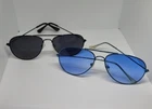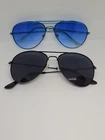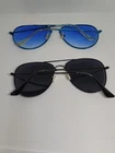 Men Aviator Sunglasses 1 Blue, 1Black. Lightweight Packable. Travel Lot of 2