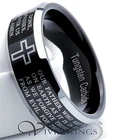 Description of Ring Brand New 8 mm Width Lord's Prayer 2.0mm Thickness 14 - 18 grams in Weight Hypoallergenic and Cobalt free Tungsten Carbide Comfort Fit ( The most accurate method of determining Comfort Fit size is to first determine your Standard Fit size at a local jeweler, and then order a half size smaller. ) Available size: 7.5, 8, 8.5, 9, 9.5, 10, 10.5, 11, 11.5, 12, 12.5, 13, 13.5, 14, 14.5, Suggested Retail: $139.00 Fact about Tungsten Ring · Tungsten Rings are extremely 'wear resistant'. · Tungsten is roughly 10 times harder than 18K gold, 5 times harder than steel and 4 times as hard as titanium. · Tungsten Carbide measures between an 8 and a 9 on the Mohs hardness scale. Compare that with a diamond which measures a 10 (the hardest substance on earth). · Due to the extreme hardness of these rings, they will hold their shape - no bending. · Tungsten Rings will remain permanently polished.