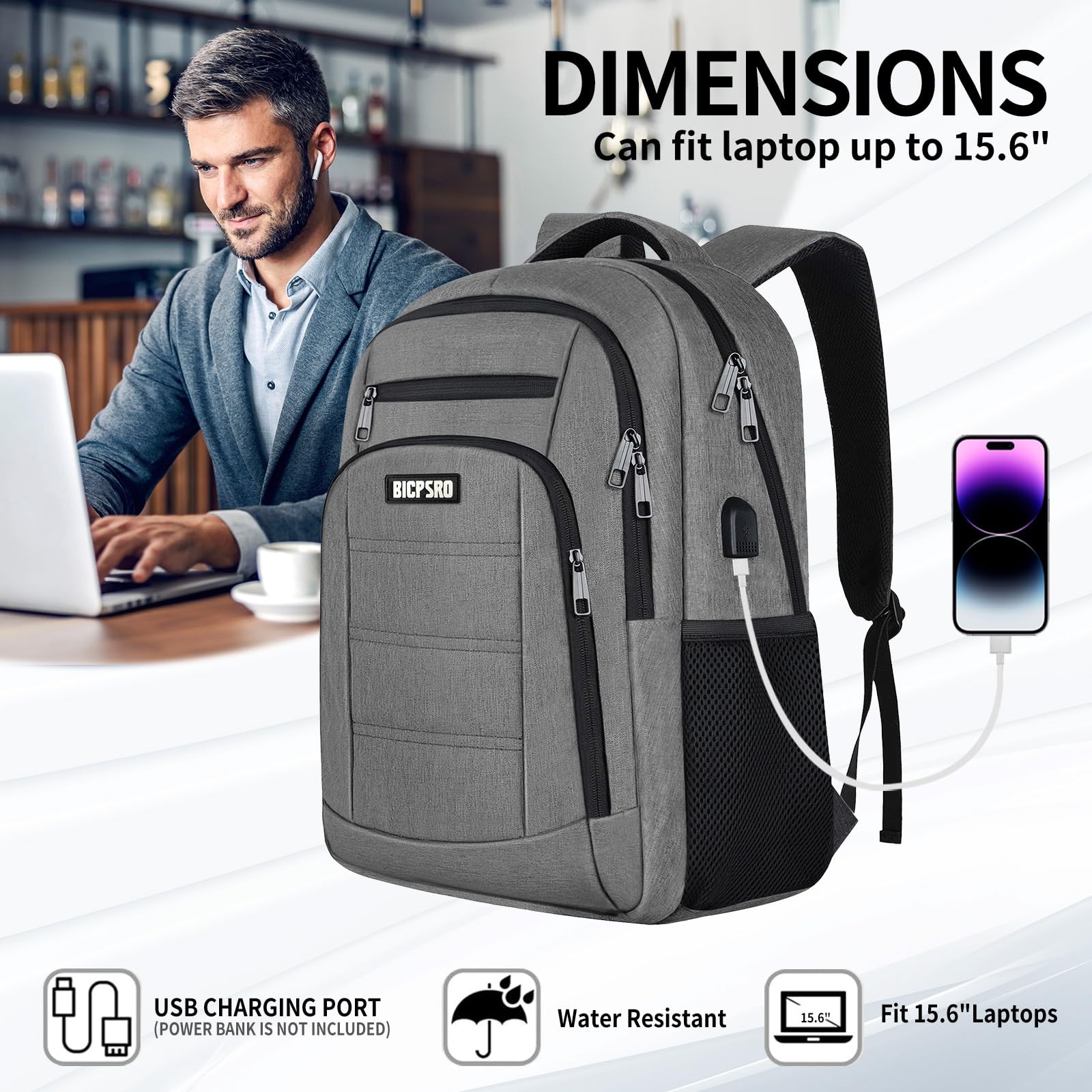 Specification Size: 18.5 X 13 X 8.5 inches Weight:1.4lbs Gender:Male and female are not limited The backpack materials: soft sturdy materials, washable and comfortable. Style: daily casual/business/travel Kind Reminder: 1-2cm error of measuring is a reasonable range due to different measurment methods. 【Storage Space & Pockets】One separate laptop compartment hold 15.6 Inch Laptop as well as 15 Inch,14 Inch 13 Inch Laptop.One spacious packing compartment roomy for iPad,mouse,charger,binders,books,clothes,ect.Mesh pockets at side for water bottle.Its thoughtful design ensures that every item has its place, catering to the needs of professionals,and travelers. 【SUPREME COMFORT IN EVERY CARRY】Designed with your comfort in mind, this laptop backpack for men/women combines ventilated padding with adjustable straps to offer support and ease during extended use. Breathable and adjustable shoulder straps relieve the stress of shoulder. Foam padded top handle for a long time carry on. 【ENHANCED SECURITY ON THE MOVE】Prioritizing your peace of mind, the travel backpack features a discreet anti-theft pocket and a sturdy luggage strap, ensuring your belongings are secure. A luggage strap allows backpack fit on luggage/suitcase, slide over the luggage upright handle tube for easier carrying. 【INNOVATIVE USB CHARGING PORT】Equipped with a USB charging port, this backpack with charge offers you a more convenient way to charge your phone while walking. (Note: Power bank not included.) 【STURDY & GUARANTEED】Laptop backpack for men/women is crafted from premium water-resistant polyester, complemented by sturdy metal zippers, ensuring longevity and protection against the elements. This functional masterpiece is not just about aesthetics; it's backed by a 1-year warranty, reflecting our dedication to quality and your satisfaction. 【IDEAL GIFT】Presenting the perfect blend of elegance, durability, and practicality, this mochilas para hombres makes an exceptional gift for anyone who appreciates reliability in their daily essentials.