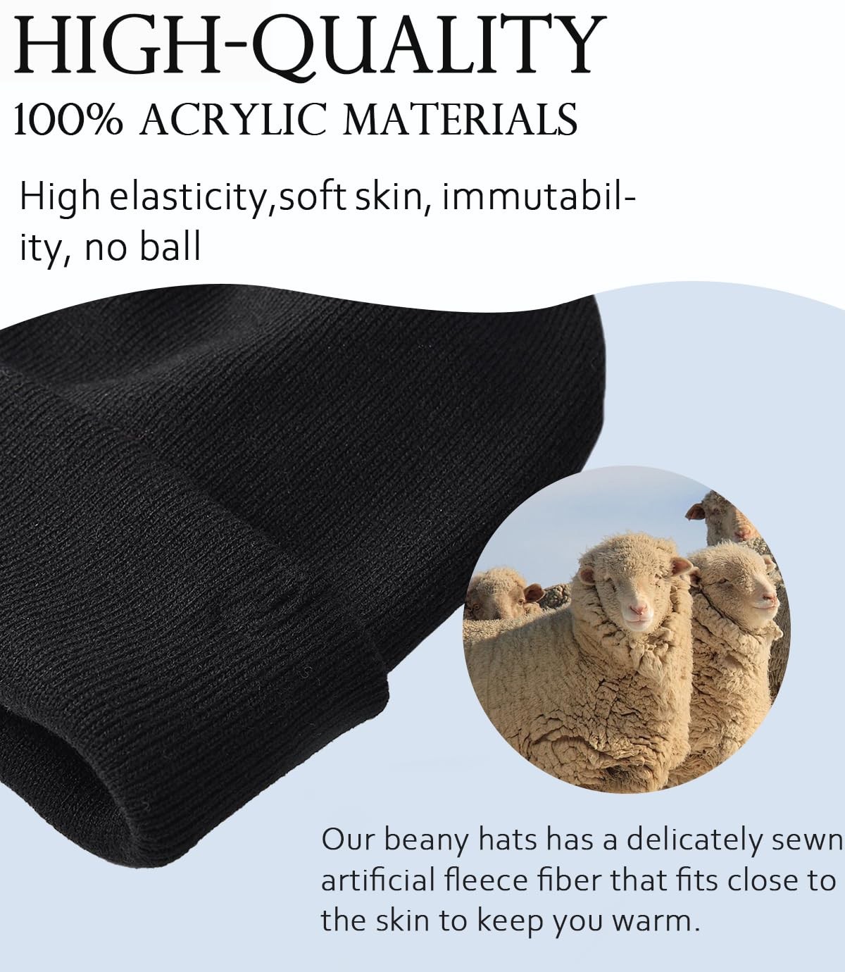 Warm The Whole Winter Enjoy your good time during autumn and winter with our baggy beanie hat that is designed with everyday use in mind. This knitted skull watch cap perfect for daily use and combines perfectly with most outfits. It’s also great for traveling and other outdoor activities like running, biking, hiking, snowboarding, skating, biking, skiing, toboggan, or snowshoeing. Must-Have Item This double-layered knit hat is the perfect accessory for the autumn and winter seasons. With its unique design, it offers both style and warmth without the hassle of a brim or hood. The double-layered construction provides extra insulation to keep you cozy in the cold weather, while the absence of a brim or hood allows for easy wearing with any outfit. Whether you're out for a walk in the park or running errands in town, this hat is a versatile and practical choice. Stay stylish and comfortable with this must-have accessory for the cooler months! Smile Embroidery Logo: The delicate embroidered logo, simple and elegant, highlights the quality of workmanship, and adds a unique personality to your wearing. The Smile Element is designed to keep you warm and optimistic inside Double layer thickening design: The double thickness of the beanie hat, coupled with a tight vertical thread weave, provides a strong barrier to warmth in the cold season. You can pull the cuff of your hat down over your ears and wrap it tightly around your head to keep out the cold High Quality Stretch Fabric: Crafted from high-quality, durable 100% acrylic material, the cuffed beanie is soft, skin-friendly, and features a stylish six-ridge knit on the top, ensuring a comfortable and stylish fit. Its high elasticity allows for easy stretching without deformation, pilling, or fraying One Size Fits All : L: 9.05 inch,W:9.05 inch.Perfect for both men and women with various head shapes, it's not just a stylish accessory for daily wear but also an ideal choice for casual gatherings and outdoor activities, providing comprehensive protection and warmth for your head during the cold season Multi-color value combination: Colorful combinations for you to choose from, the three-piece set is a great value and a versatile and fashionable new choice to meet your different matching needs on different occasions. At the same time, the beanies bulk, whether at parties, festivals or outdoor activities, for family, partners and friends, this smile beanie hat can become the most beautiful connection between each other. Let love and smile always go together
